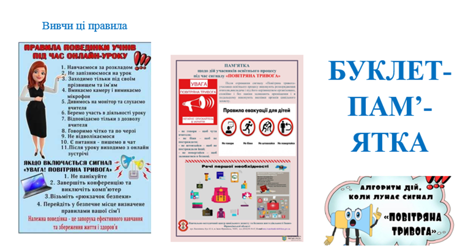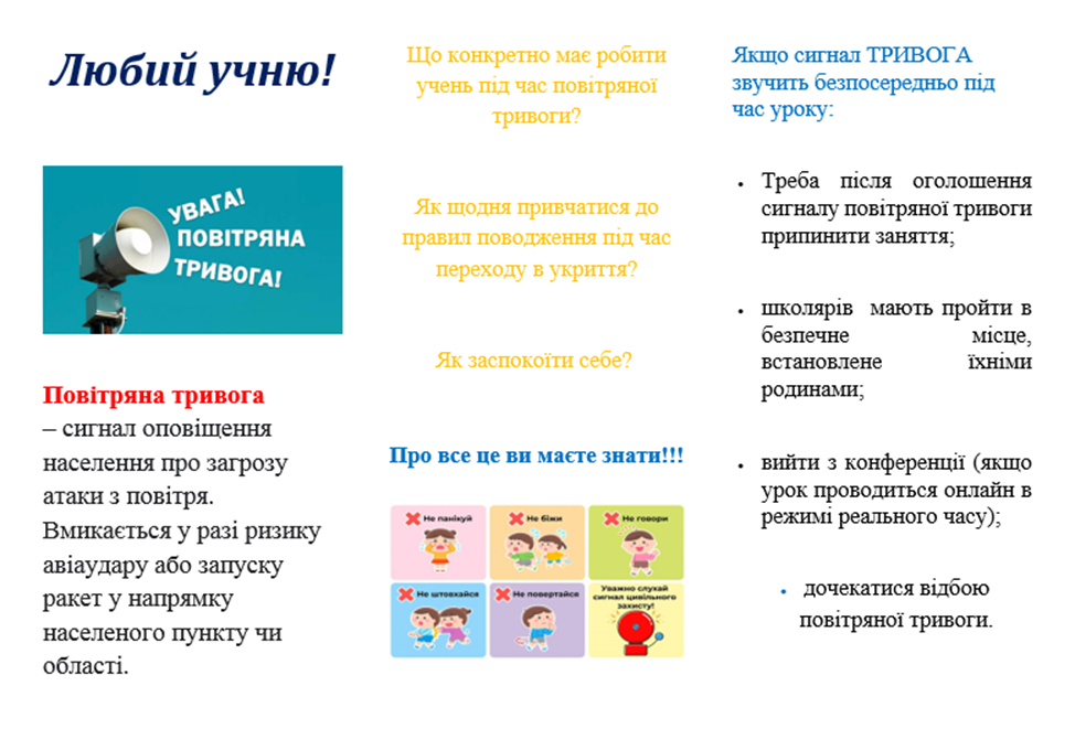 самостійно створити пам'ятки і буклети з правилами поведінки під час повітряної тривоги. Уявіть, що ви маєте створити пам'ятки, призначені для: