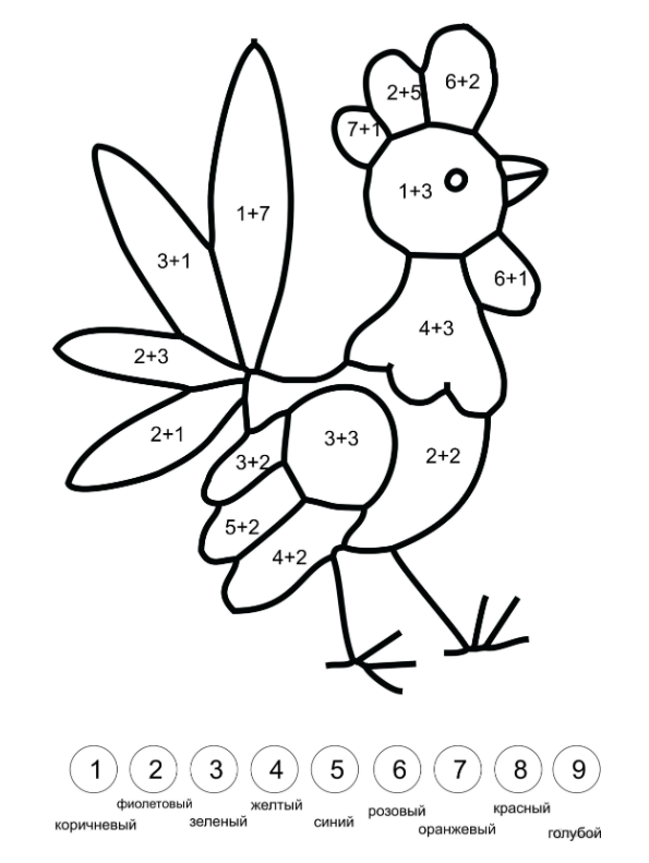 Знайди значення виразів та з їх допомогою розфарбуй півника