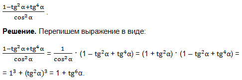 a3 + b3 = (a + b)(a2 – ab + b2). У нас а = 1, b = tg2α.