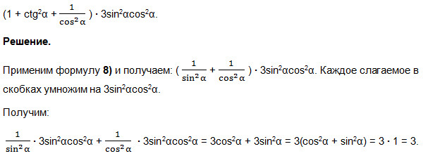 и) cos2α+tg2αcos2α = cos2α(1+tg2α) = 1. Мы вначале вынесли общий множитель за скобки, а содержимое скобок упростили по формуле 7).