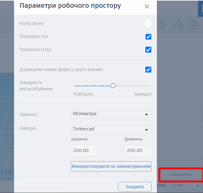 Однією з програм, в якій можна створювати та роздруковувати, завантажувати та змінювати 3D-моделі є середовище Tinkercad (https://www.tinkercad.com/). Після реєстрації у цьому середовищі користувачі мають змогу обрати різні режими роботи, серед яких є режим 3D-моделювання.